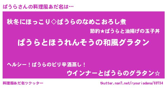 | 男性向けラノベタイトル風あだ名 | 『ぱうら~年齢イコール彼女いない歴の魔法使い~』 |