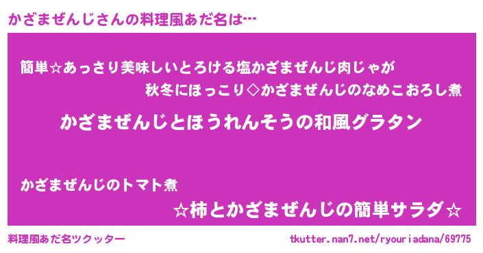 | ヘコむあだ名 | 『かざまぜんじ(震え声)』『かざを』 |