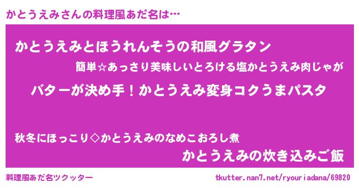 | ヘコむあだ名 | 『かとうえみ(遠い目)』『レバニラ』 |