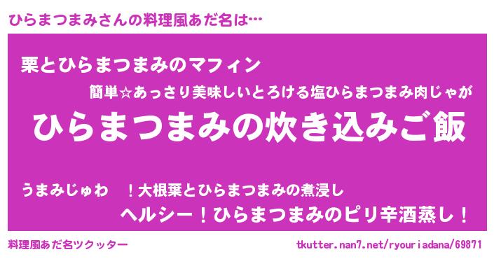 | 意味不明あだ名 | 『自称ひらまつまみ』 |