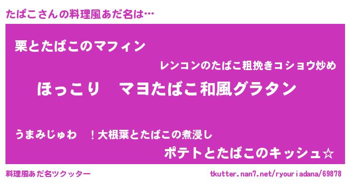| ポケモン風あだ名 | 『ターバイ』『タバゴンZ』『ヒタバコ』 |