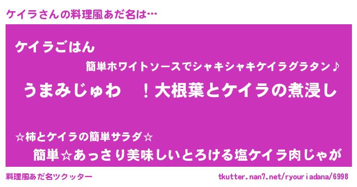 | 欧米人風あだ名 | 『ケイラクリステル』『トリンドルケイラ』 |