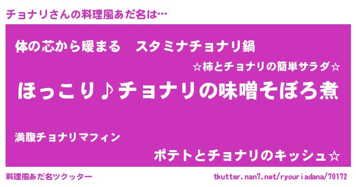 | 意味不明あだ名 | 『ペロリンチョナリ』『永久保存チョナリ』 |