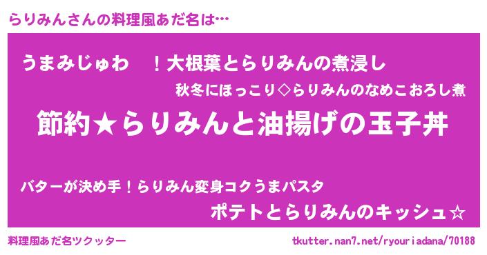 | 胡散臭い通販商品みたいなあだ名 | 『モテモテ間違いなし水晶球…その名も「らりみん」』 |