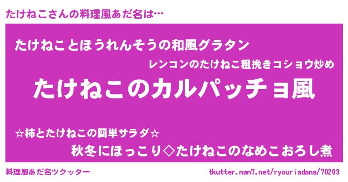 | 意味不明あだ名 | 『住所不定無職たけねこ(65歳)』 |