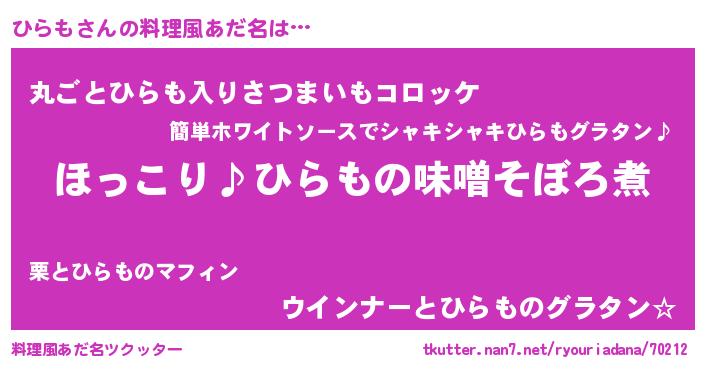 | ヘコむあだ名 | 『ひらっふぃ~』『なまこ酢』 |