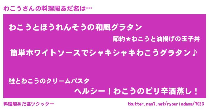| 女子向けラノベタイトル風あだ名 | 『わこう様がみてる』『闇のわこう』 |