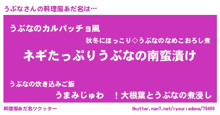 | ヘコむあだ名 | 『うぶにゅー』『つくし』 |