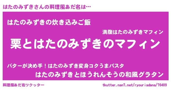 | ヘコむあだ名 | 『はたのみずき(苦笑)』『はたにゅー』 |