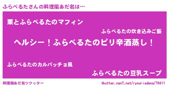 | 男性向けラノベタイトル風あだ名 | 『Re:ふらべるたから始める異世界生活』 |