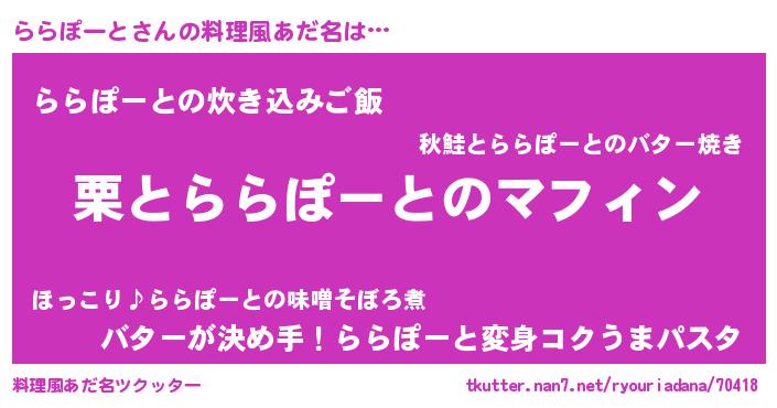 | ピコ太郎風あだ名 | 『ララ太郎』『ピコラ郎』『ラコ史郎』 |
