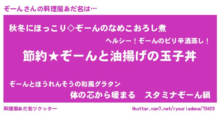 | ポケモン風あだ名 | 『ゾーチュウ』『ゾーゴンZ』 |