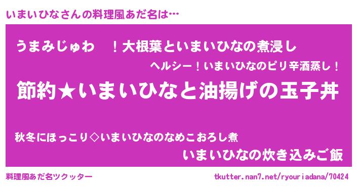 | 意味不明あだ名 | 『ペロリンいまいひな』『自称いまいひな』 |