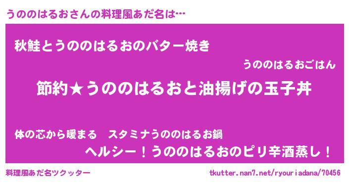 | 男性向けラノベタイトル風あだ名 | 『うののはるおの憂鬱』 |
