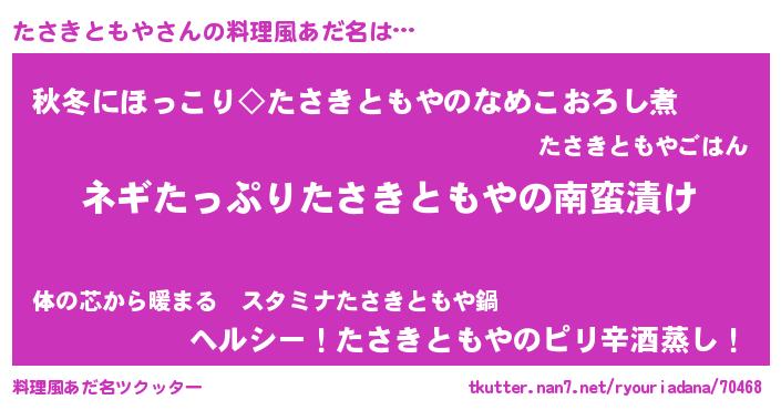 | 胡散臭い通販商品みたいなあだ名 | 『億万長者になれるブレスレット…その名も「たさきともや」』 |