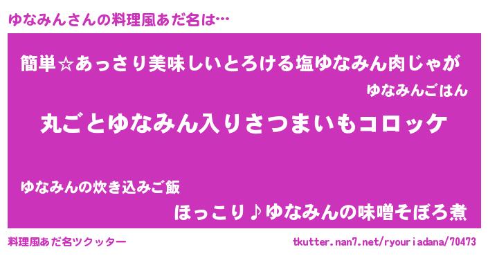 | 男性向けラノベタイトル風あだ名 | 『この素晴らしい世界にゆなみんを!』 |