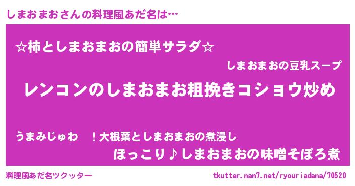 | 意味不明あだ名 | 『自称しまおまお』『ペロリンしまおまお』 |