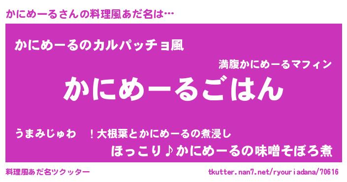 | 意味不明あだ名 | 『めかぶ科かにめーる属』 |
