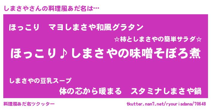 | ヘコむあだ名 | 『しまにゅー』『なまこ酢』 |