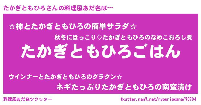 | 男性向けラノベタイトル風あだ名 | 『転生したらたかぎともひろだった件』 |