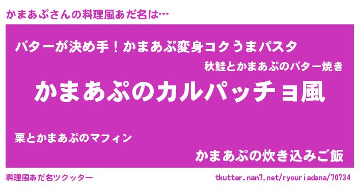 | 意味不明あだ名 | 『住所不定無職かまあぷ(47歳)』 |