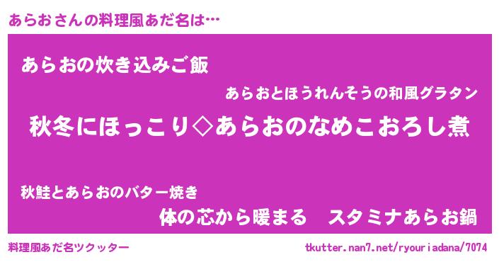 | ヒーロー風カッコイイあだ名 | 『ウルトラあらおマン』『ネオアラオ』 |
