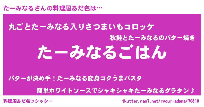 | ヘコむあだ名 | 『たー太郎』『たーみなる(笑)』 |