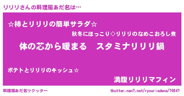 | ヒーロー風カッコイイあだ名 | 『ウルトラリリリマン』『ネオリリリ』 |