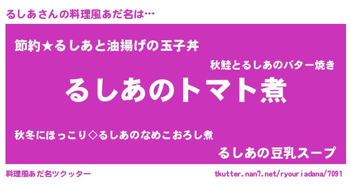 | ヘコむあだ名 | 『るしにゅー』『るしを』『豆乳』 |