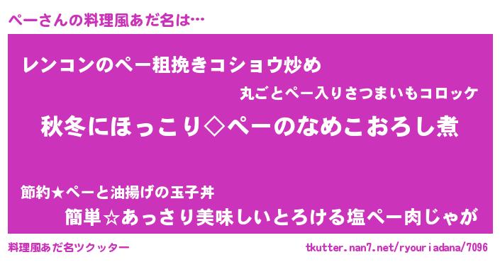 | 意味不明あだ名 | 『自称ぺー』『永久保存ぺー』 |
