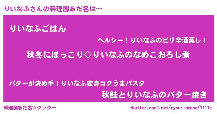 | 恥ずかしいあだ名 | 『りいちん』『リイナフデラックス』 |