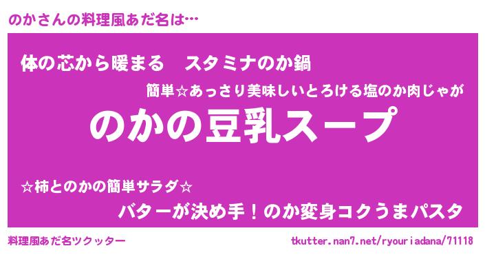 | 女子向けラノベタイトル風あだ名 | 『のかは平凡を望む』『のかの雑貨屋さん』 |