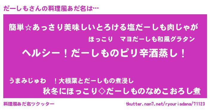 | 意味不明あだ名 | 『自称だーしも』『永久保存だーしも』 |
