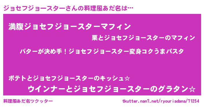 | 女子向けラノベタイトル風あだ名 | 『ジョセフジョースター恋絵巻』 |