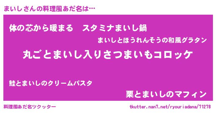 | 男性向けラノベタイトル風あだ名 | 『この素晴らしい世界にまいしを!』 |