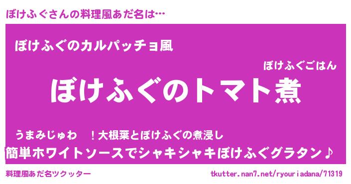 | 男性向けラノベタイトル風あだ名 | 『おまえをオタクにしてやるから、俺をぼけふぐにしてくれ! 』 |