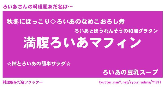 | 胡散臭い通販商品みたいなあだ名 | 『絶対に幸福をもたらす健康食品…その名も「ろいあ」』 |