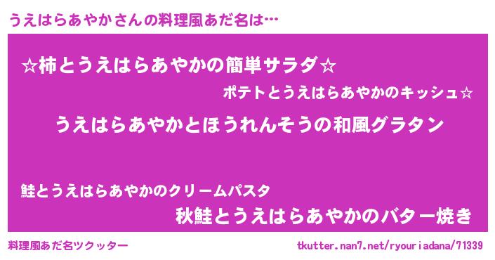 | ヘコむあだ名 | 『うえはらあやか(遠い目)』『うえを』 |