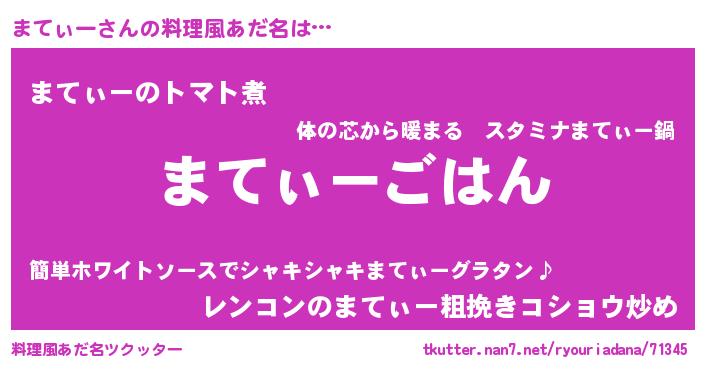 | 可愛いあだ名 | 『まてぷりん』『まてちゅっちゅ』 |