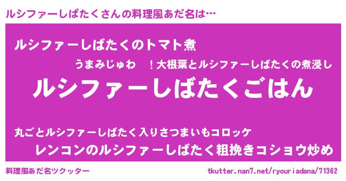 | 男性向けラノベタイトル風あだ名 | 『ルシファーシバタクスレイヤー』 |