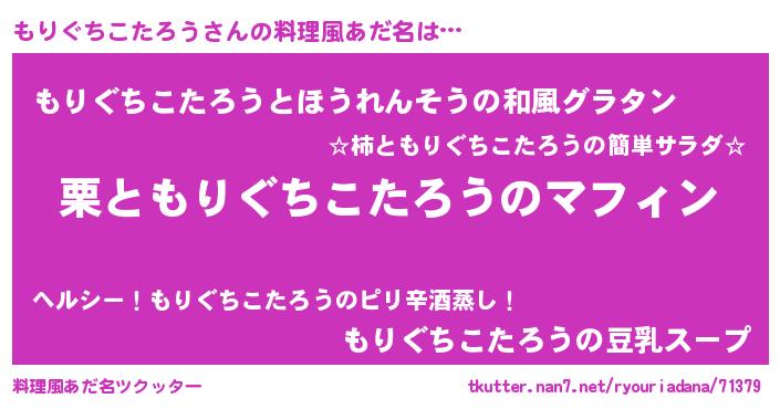 | 意味不明あだ名 | 『めかぶ科もりぐちこたろう属』 |