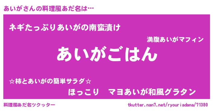 | 男性向けラノベタイトル風あだ名 | 『アイガスレイヤー』『緋弾のアイガ』 |