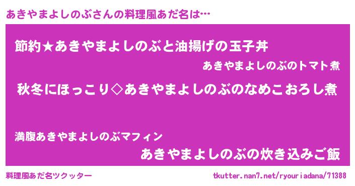 | ヘコむあだ名 | 『あきにー』『あきやまよしのぶ(苦笑)』 |