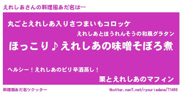 | ヘコむあだ名 | 『えれにゅー』『えれしあ(爆)』 |