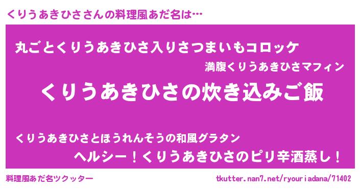 | ヘコむあだ名 | 『くりうあきひさ(遠い目)』『酢こんぶ』 |
