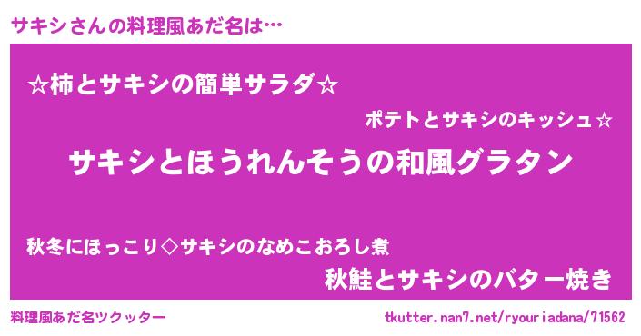 | 男性向けラノベタイトル風あだ名 | 『サキシ~年齢イコール彼女いない歴の魔法使い~』 |