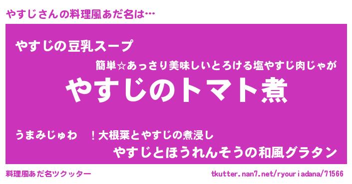 | 男性向けラノベタイトル風あだ名 | 『おまえをオタクにしてやるから、俺をやすじにしてくれ! 』 |