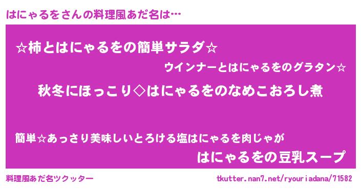 | ヘコむあだ名 | 『はにっちょ』『つくし』『はにもー』 |
