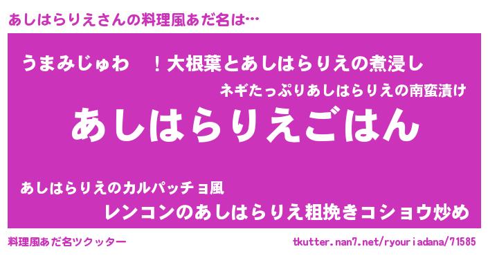 | 胡散臭い通販商品みたいなあだ名 | 『幸せが訪れる高級そうな壺…その名も「あしはらりえ」』 |