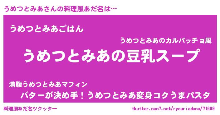 | 意味不明あだ名 | 『とにかく怪しいうめつとみあ』 |